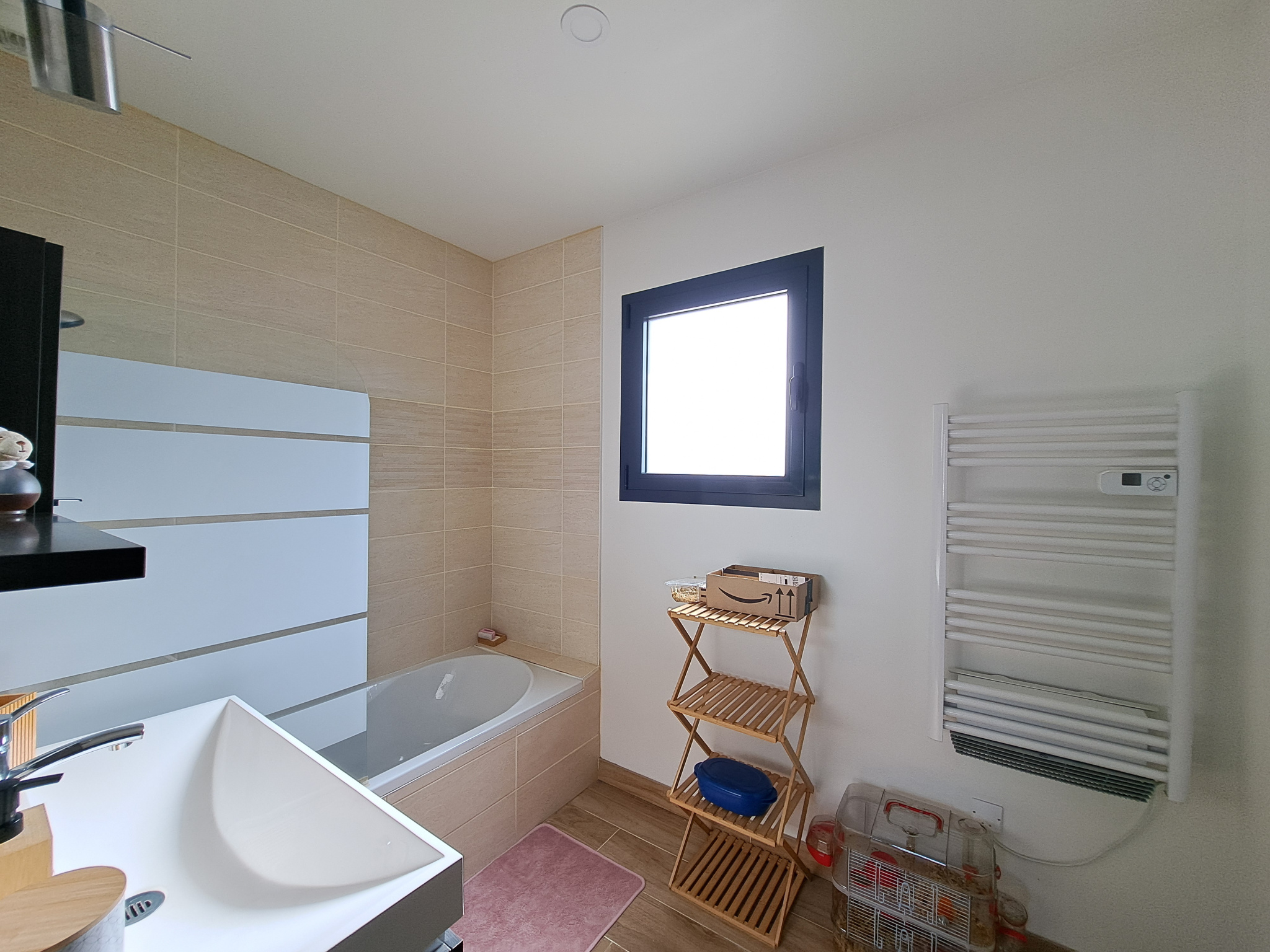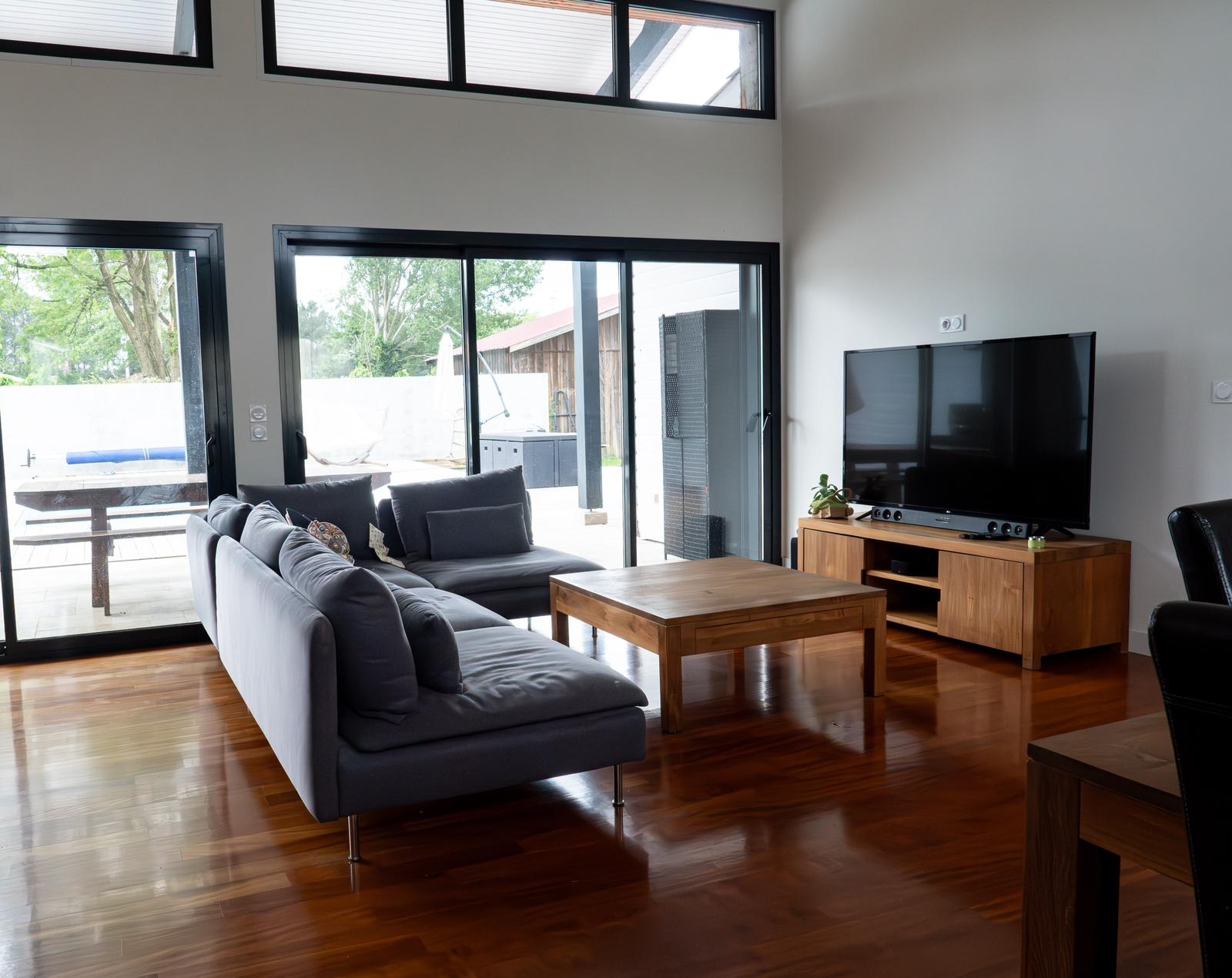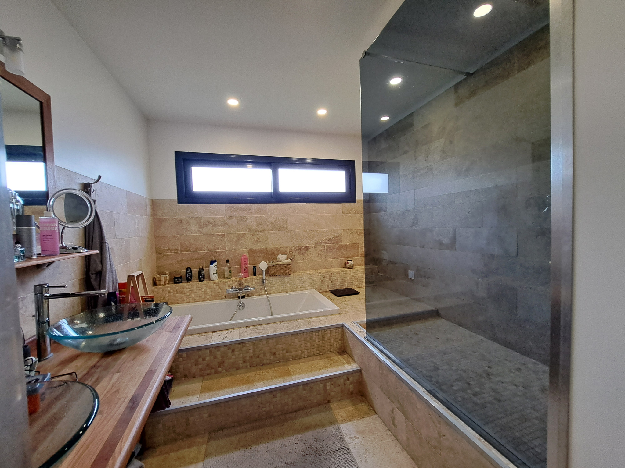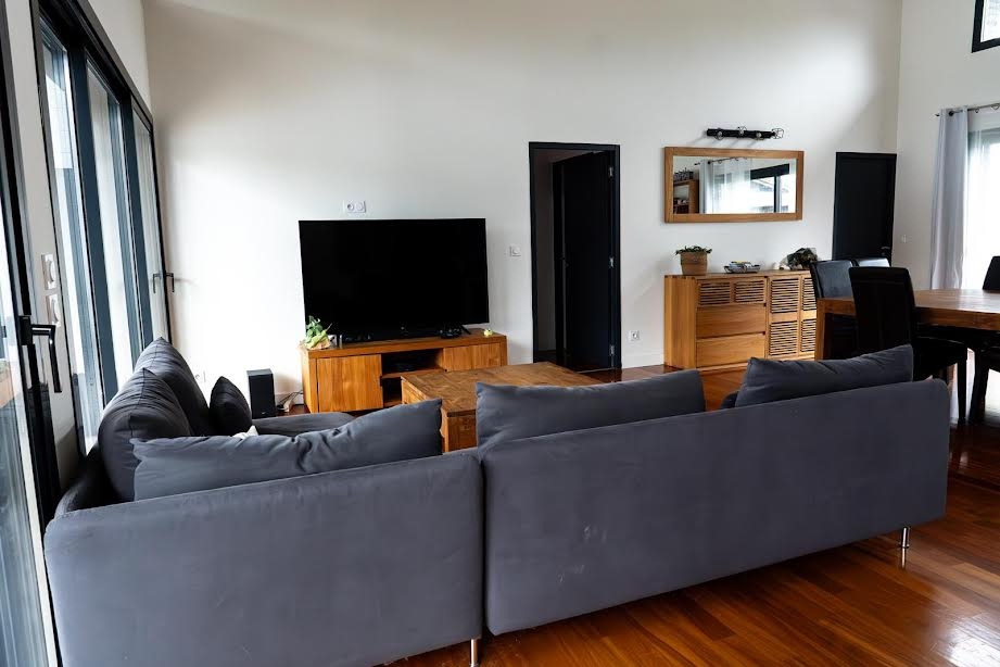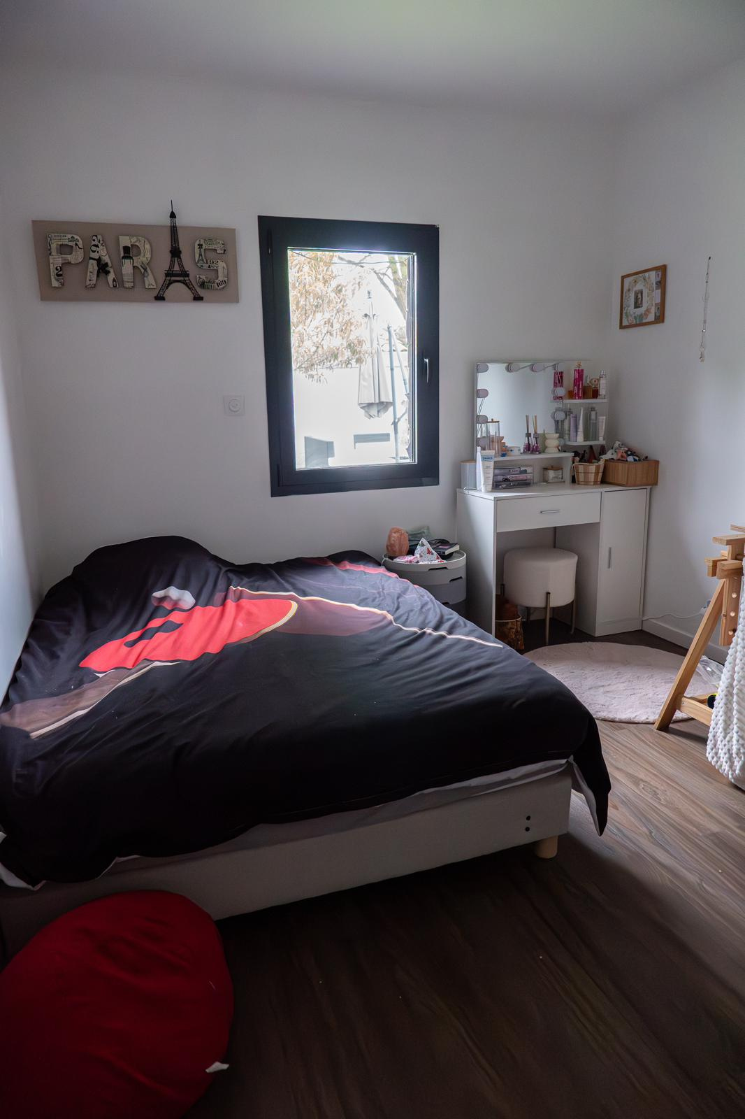 La maison se compose de 4 chambres, dont une suite parentale avec salle de bain en travertin comprenant baignoire, douche et WC.La grande pièce de vie, particulièrement lumineuse grâce à de larges ouvertures, s’ouvre sur une vaste terrasse en bois avec piscine intégrée et un coin jacuzzi, idéal pour se détendre en toute saison.La terrasse est complétée par un aménagement soigné comprenant barbecue, transats, hamac et balançoire.