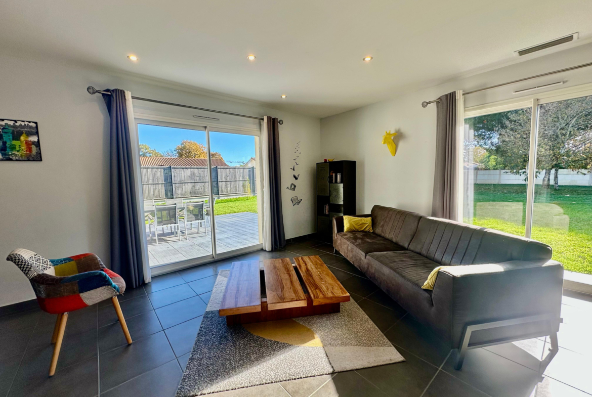 Située dans le centre du village, cette charmante maison de 101 m2 édifiée sur un magnifique terrain clos de 1 111 m2 vous séduira par sa luminosité et son cadre paisible.