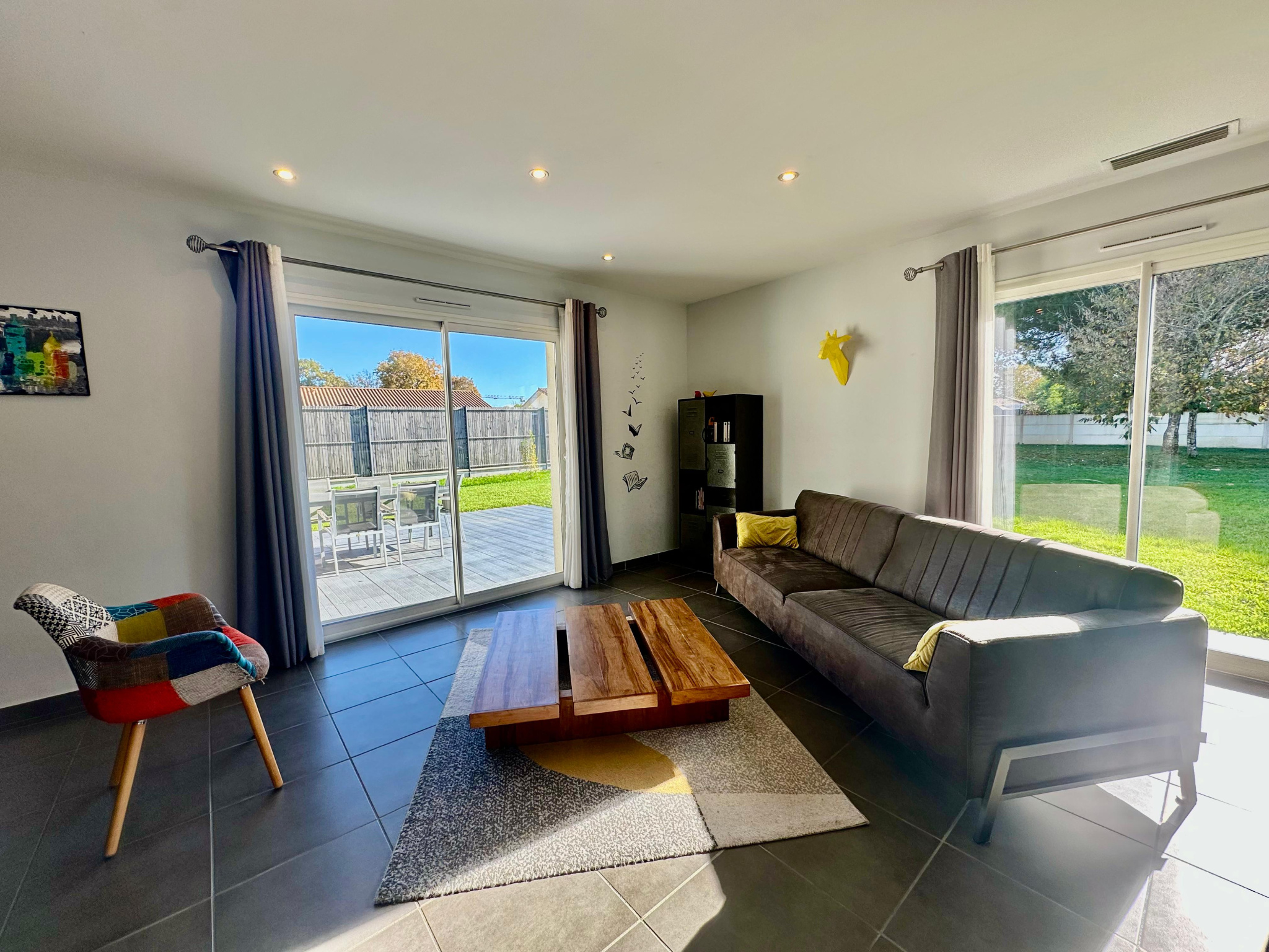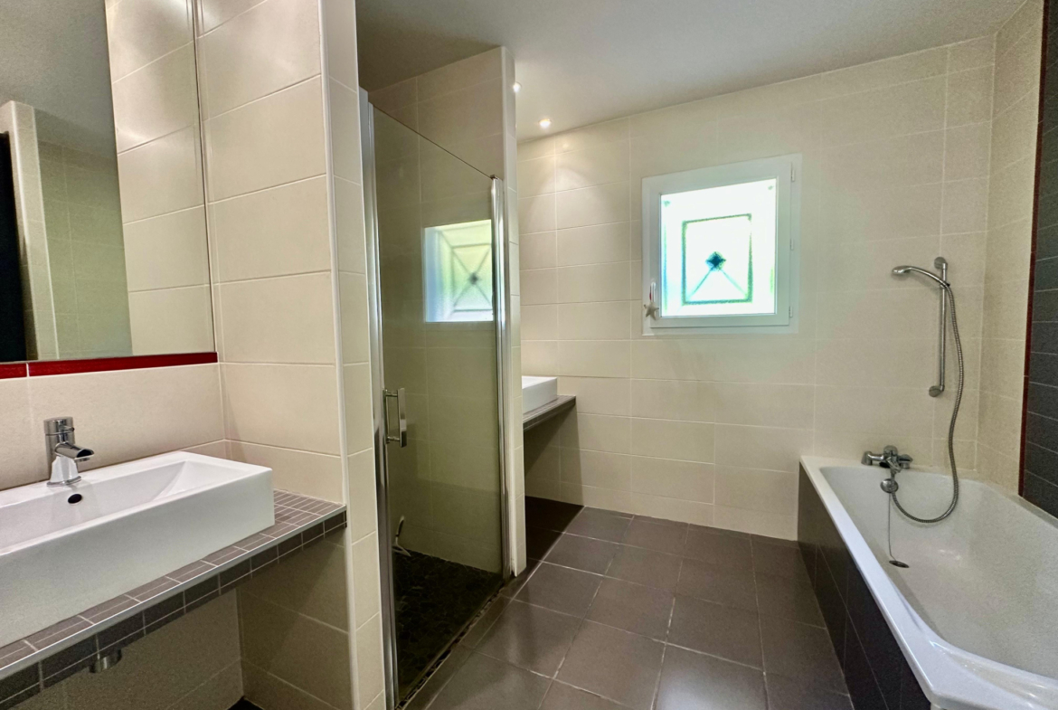 Elle se compose d’un espace de vie lumineux avec salon-séjour ouvert sur une cuisine équipée, un cellier, trois chambres, une salle de bain avec baignoire, douche italienne et double vasque et un chauffage par pompe à chaleur pour un confort optimal.