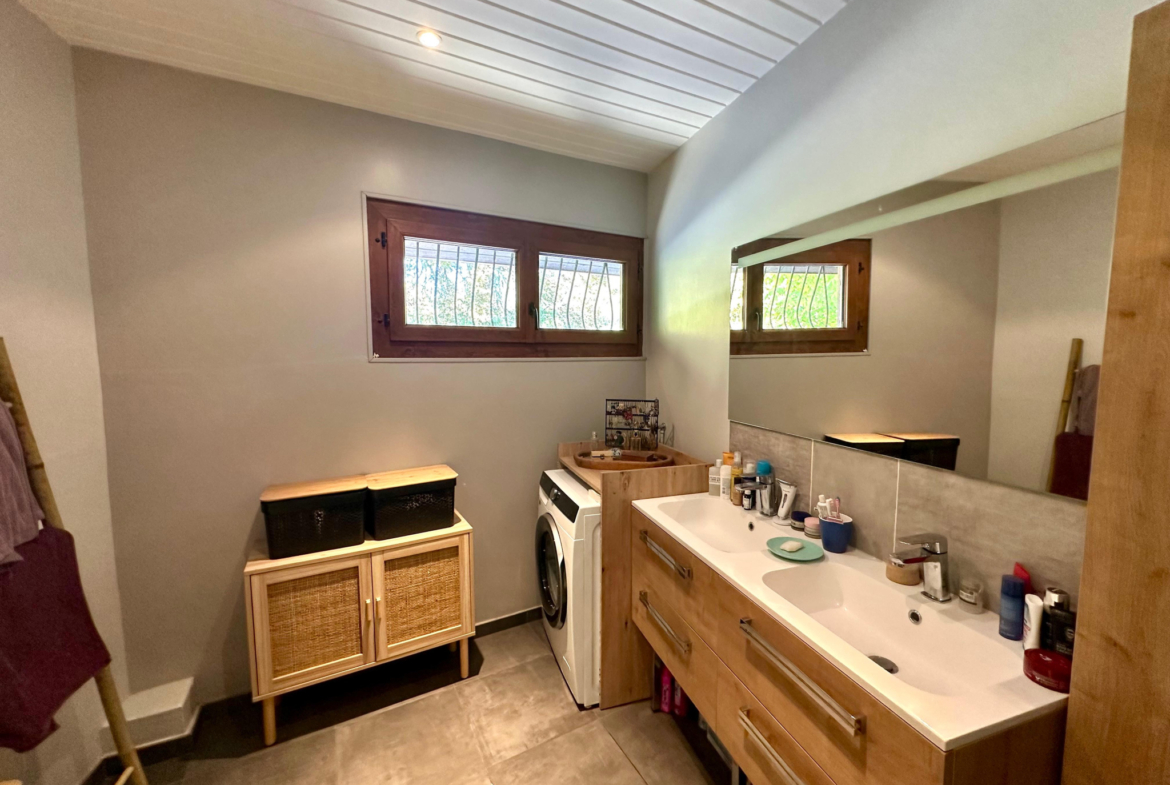 Une seconde salle de bains, deux toilettes et un cellier complètent ce niveau avec une fonctionnalité irréprochable.