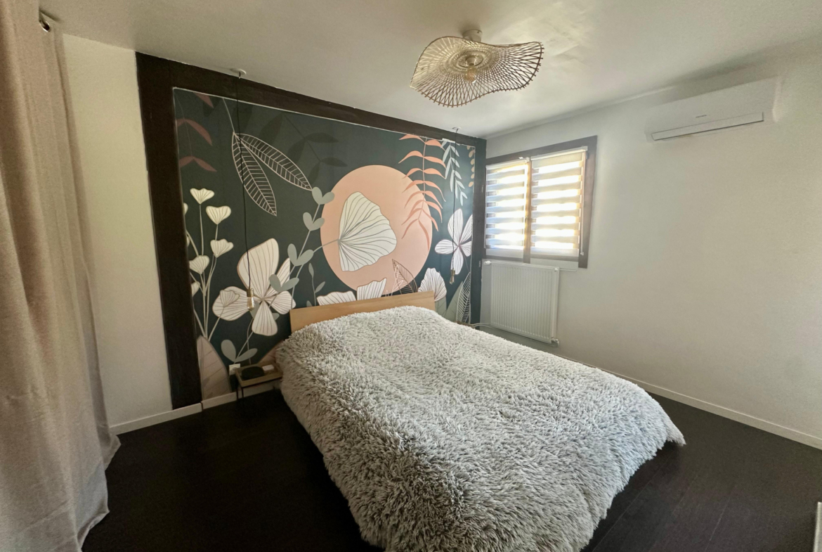À l’étage, trois chambres accueillent la famille ou les invités, chacune bénéficiant d’un cadre serein et d’une luminosité agréable. Le calme y est total.