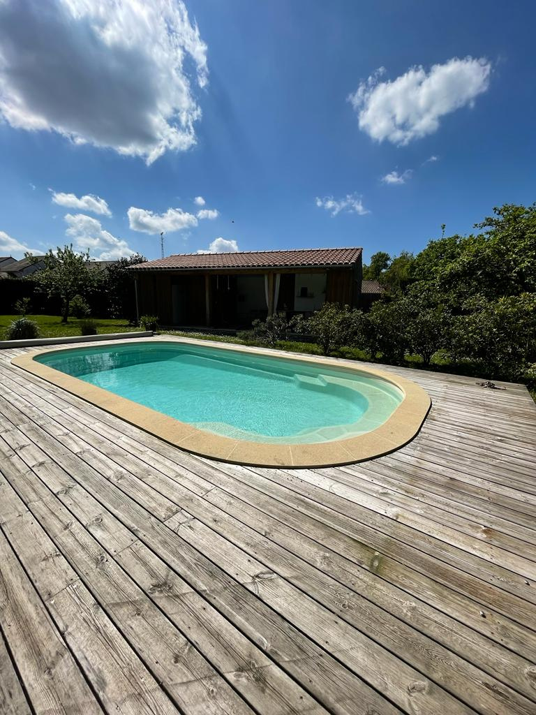 A l’extérieur le jardin arboré est agrémenté d’une terrasse bois et d’une piscine. Une cuisine d’été, une douche et un wc viennent parfaire l’ensemble. Vous pourrez stationner vos voitures à l’intérieur du terrain et sécuriser vos motos dans un garage prévu à cet effet.