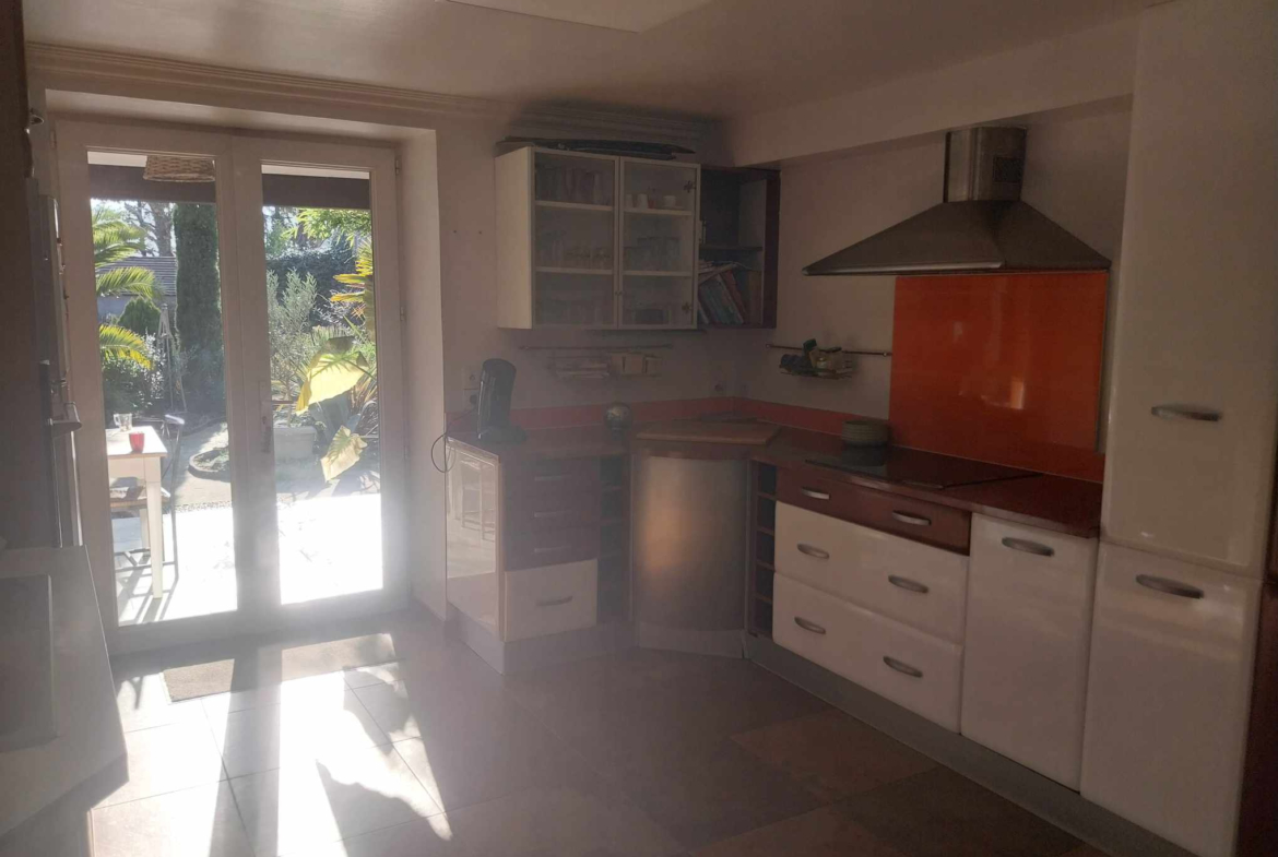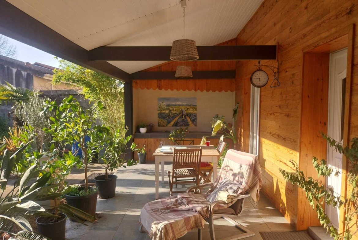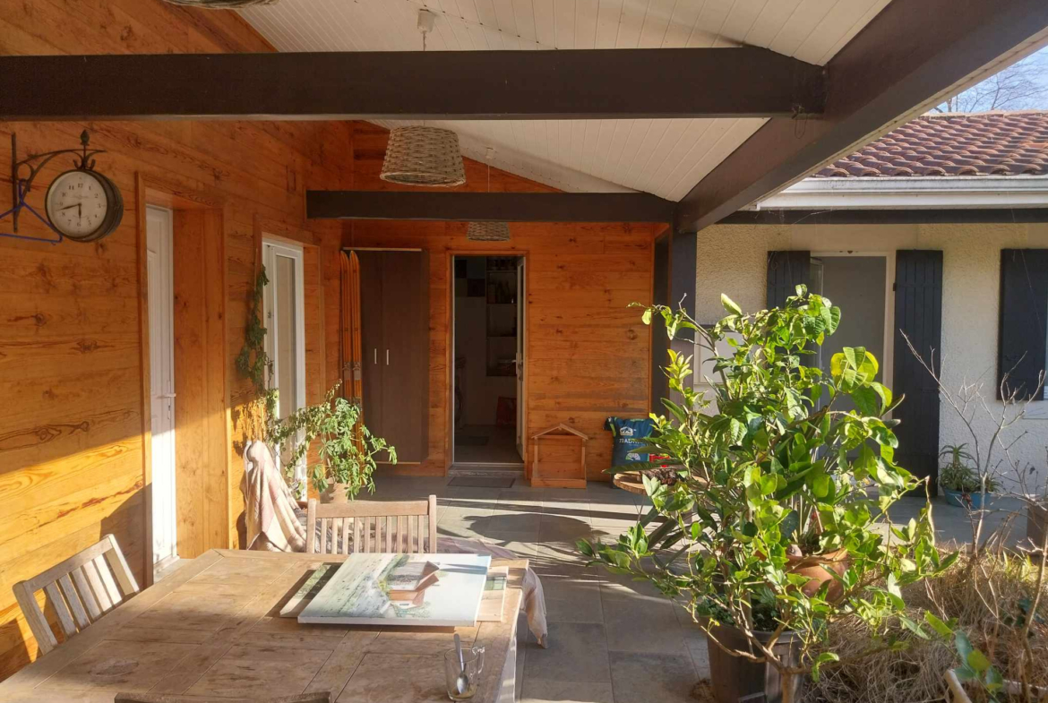 La maison principale développe 7 pièces, agrémentées d’une terrasse couverte de 40 m2, idéale pour prolonger les beaux jours. À cela s’ajoutent un studio autonome, un atelier, et un extérieur intimiste parfaitement orienté, le tout édifié sur une parcelle de 372 m2.