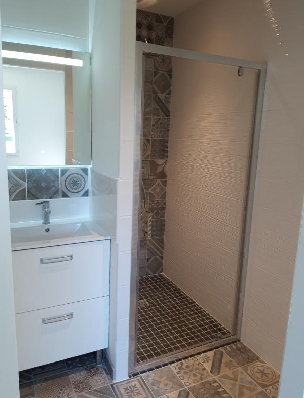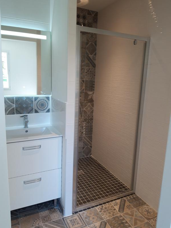 A louer, dans un quartier calme de Gujan Mestras, une maison récente de 90,52 m2. Elle comprend une entrée, une pièce de vie lumineuse de 39m2 avec cuisine aménagée et équipée, un cellier, un wc séparé, trois chambres dont une suite parentale avec salle d’eau, une deuxième salle d’eau avec wc et un garage. Vous profiterez d’une terrasse bois exposée plein sud et d’équipements de qualité (volets électriques, clim réversible, visiophone, portail électrique).