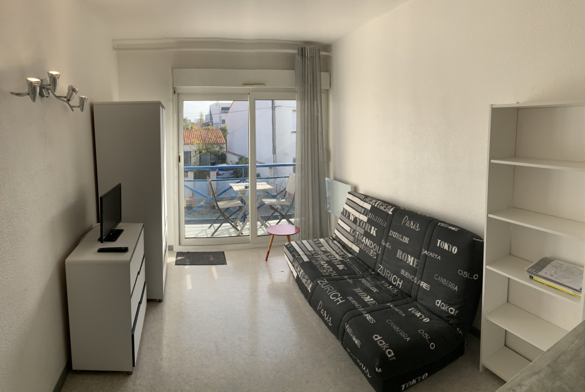 Studio meublé de 20m2 avec balcon au 1er et dernier étage d’une résidence, idéalement situé (rue Berlioz), proche de l’hôpital de La Rochelle 17000, à proximité du centre-ville et de la gare SNCF (10 min à pied).
